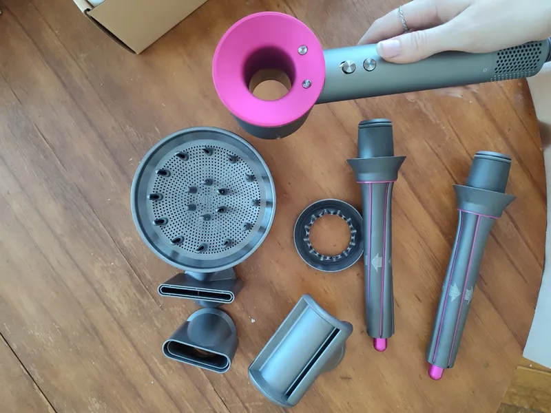 Товар пришел в хорошем состоянии, все целое, насадки прочно крепятся к фену с помощью магнита. Локоны получаются очень красивые. Сушит быстро. В подарок положили зажимы для волос и расческу — очень приятно! Спасибо! Будем надеятся что прослужит долго! Советую к заказу!