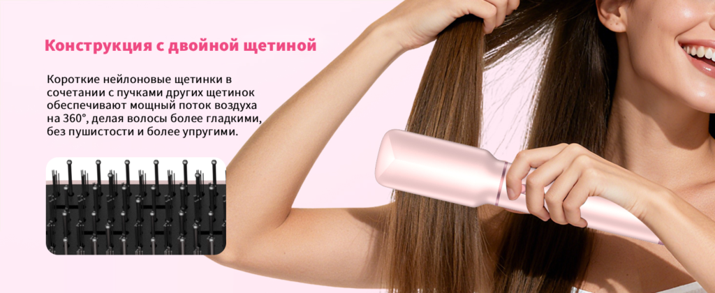 2. Технология стайлера обеспечивает бережную укладку. Улучшенный эффект Коанды мягко притягивает волосы к поверхности щетки или плойки, создавая аккуратные локоны без спутывания. Ионная технология нейтрализует статическое электричество, делая волосы гладкими и блестящими после каждой укладки.