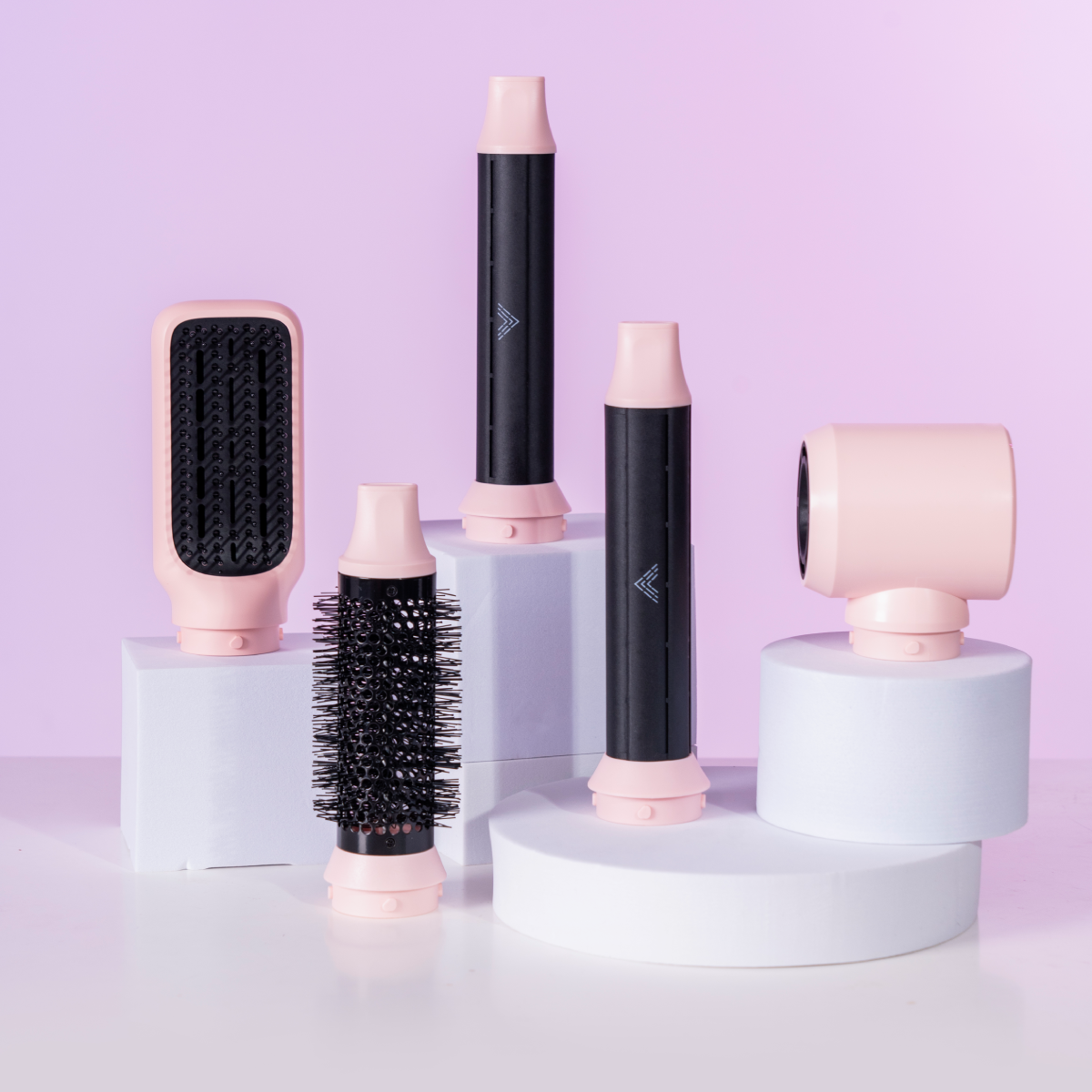 3. Универсальность и продуманность делают Beutyone незаменимым как дома, так и в поездках. Съемные насадки легко превращают устройство из фена в выпрямитель или плойку. Процесс завивки становится простым и интуитивным: просто поднесите прядь волос к насадке-плойке, и технология Коанды бережно накрутит ее, создавая стойкие локоны без усилий.