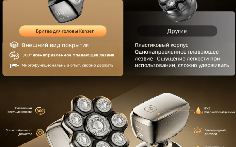 2. Гибкая плавающая головка: технология плавающей головки эффективно снимает давление на лицо и делает бритье более комфортным и гладким.