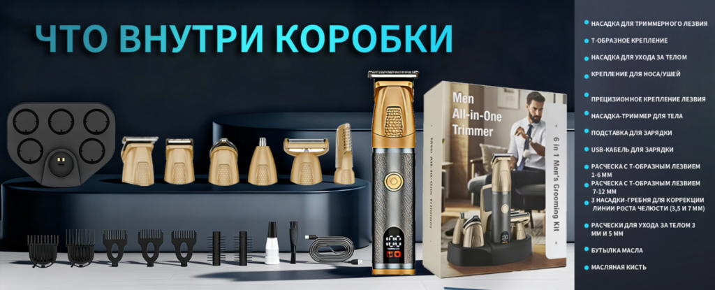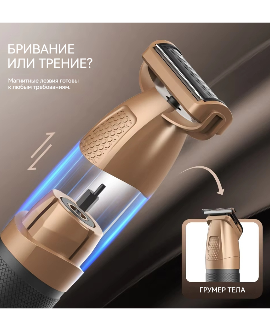 1. Многофункциональная мужская электробритва 6-в-1 — это универсальный набор для ухода, который решает все задачи бритья и стрижки. Данная мужская электрическая бритва-шейвер оснащена усовершенствованной системой с 7D плавающими головками, обеспечивающей идеально гладкое и комфортное бритье, будь то бритье лица или головы.